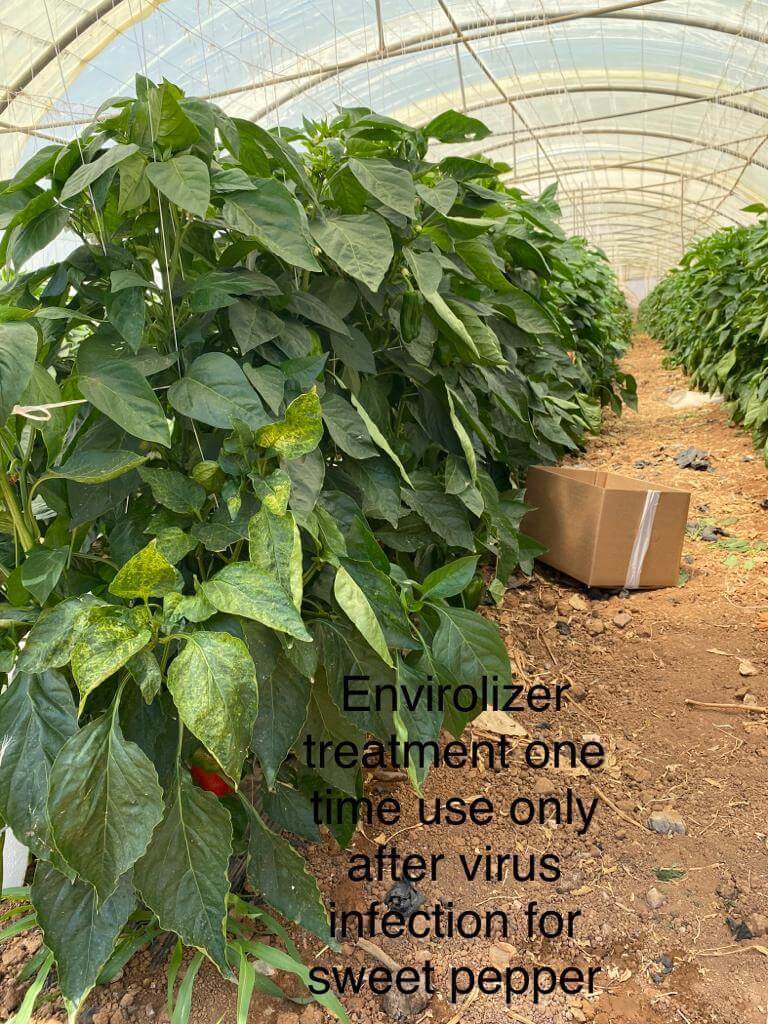 - Sweet pepper: the company used one application of Envirolizer after the plants were infected with a virus, after 10 days of using the product the plant made new leaves and produce new identical fruits.